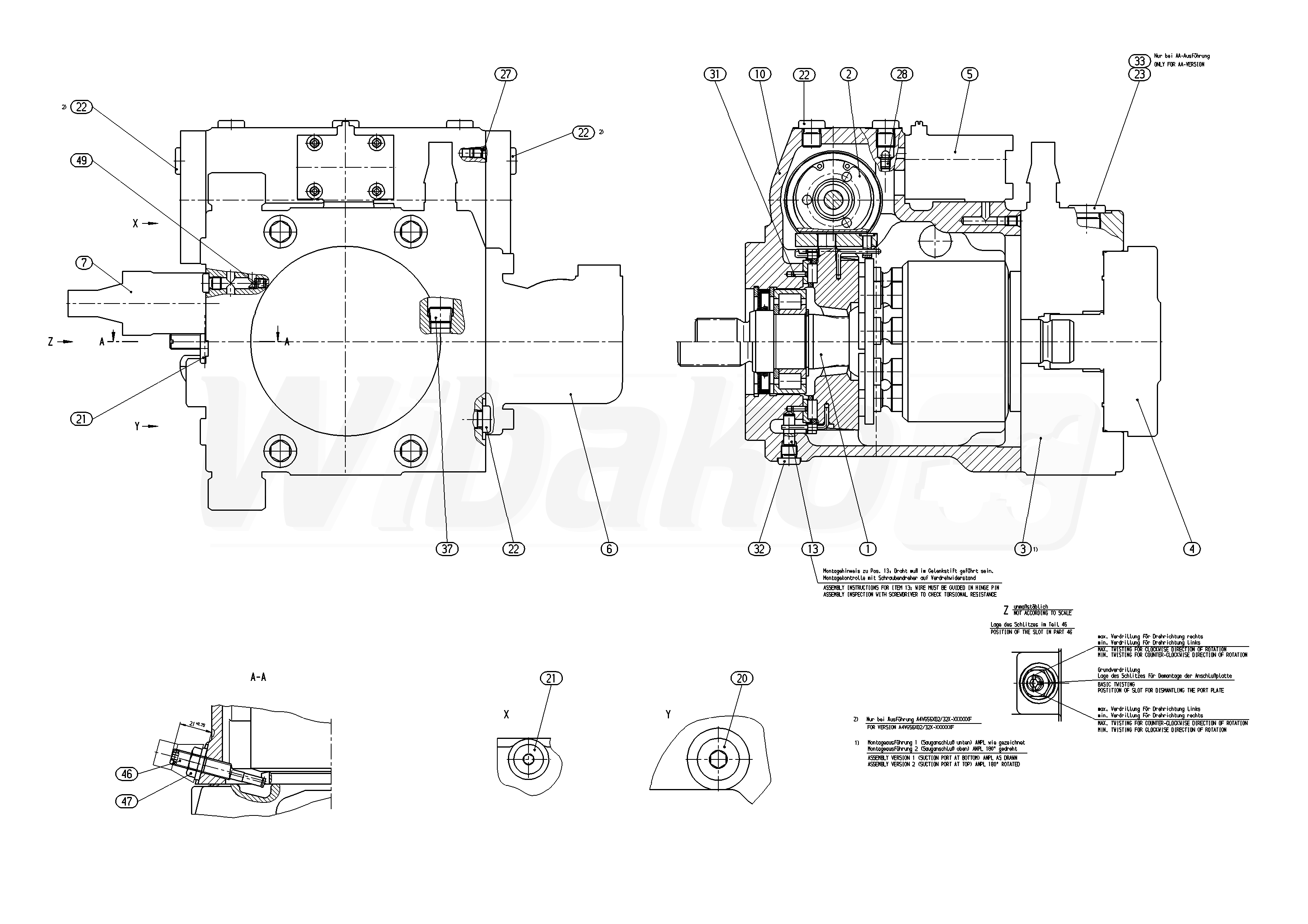 Axial piston variable pump A4VG. Geometric displacement 71 cm3. Pressure cut-off. DA control valve, fixed setting. Series 3, index 2. Direction of rotation (viewed on drive shaft): clockwise. Sealing material: NBR (nitrile rubber), shaft seal in FKM (fluoroelastomer). Splined shaft ANSI B92.1a for single pump. Mounting flange SAE J744 2+4-hole. Integrated boost pump. Flange SAE J744 101-2 (B), hub for splined shaft 7/8 in 13T 16/32DP. High pressure relief valve, pilot operated 100 to 420 bar with bypass.