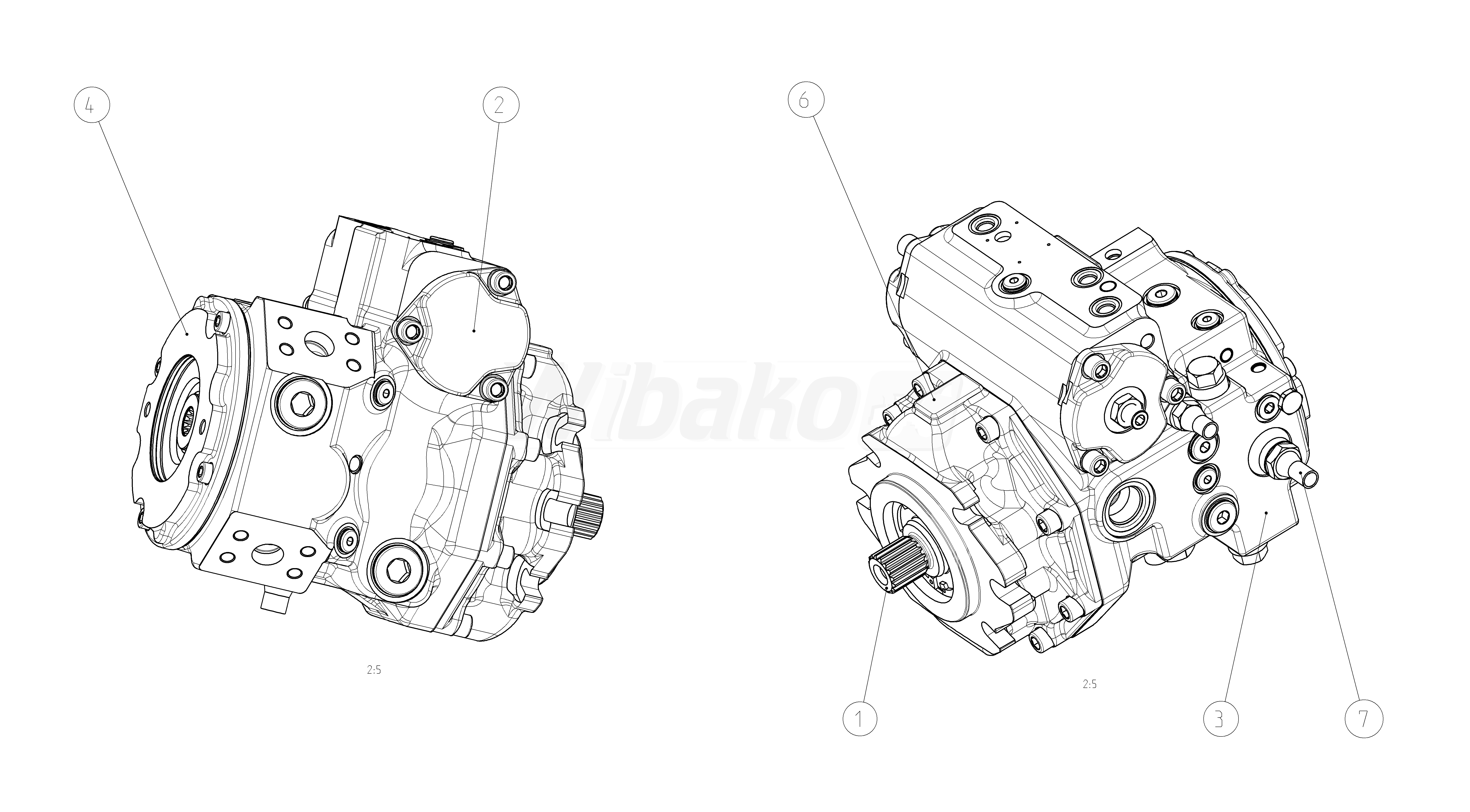Axial piston variable pump A4VG, swashplate design, nominal pressure 450 bar, maximum pressure 500 bar. Pump, closed circuit. Geometric displacement 085 cm3. Hydraulic control, direct operated. Pressure cut-off, with bypass. Fixed setting, hydraulic, mechanical. Without connector. Without swivel angle sensor. Without additional function. DA control valve, fixed setting. Series 40. Metric ports according to ISO 6149 with O-ring seal, metric fastening thread according to DIN 13. Direction of rotation: clockwise (viewed on drive shaft). Sealing material: NBR (nitrile rubber), shaft seal in FKM (fluoroelastomer). Mounting flange SAE J744 127-2/4. SAE working port A and B, on left side (45° left). Standard rotary group, boost pump integrated, standard internal gear pump. Flange SAE J744: diameter- 101-2 (B), mounting- horizontal, code- B2. Hub for splined shaft: diameter- 7/8 in 13T 16/32DP, code- S4. High-pressure relief valve, direct operated, fixed setting, with low-pressure relief valve, fixed setting. Filtration in the boost pump suction line.