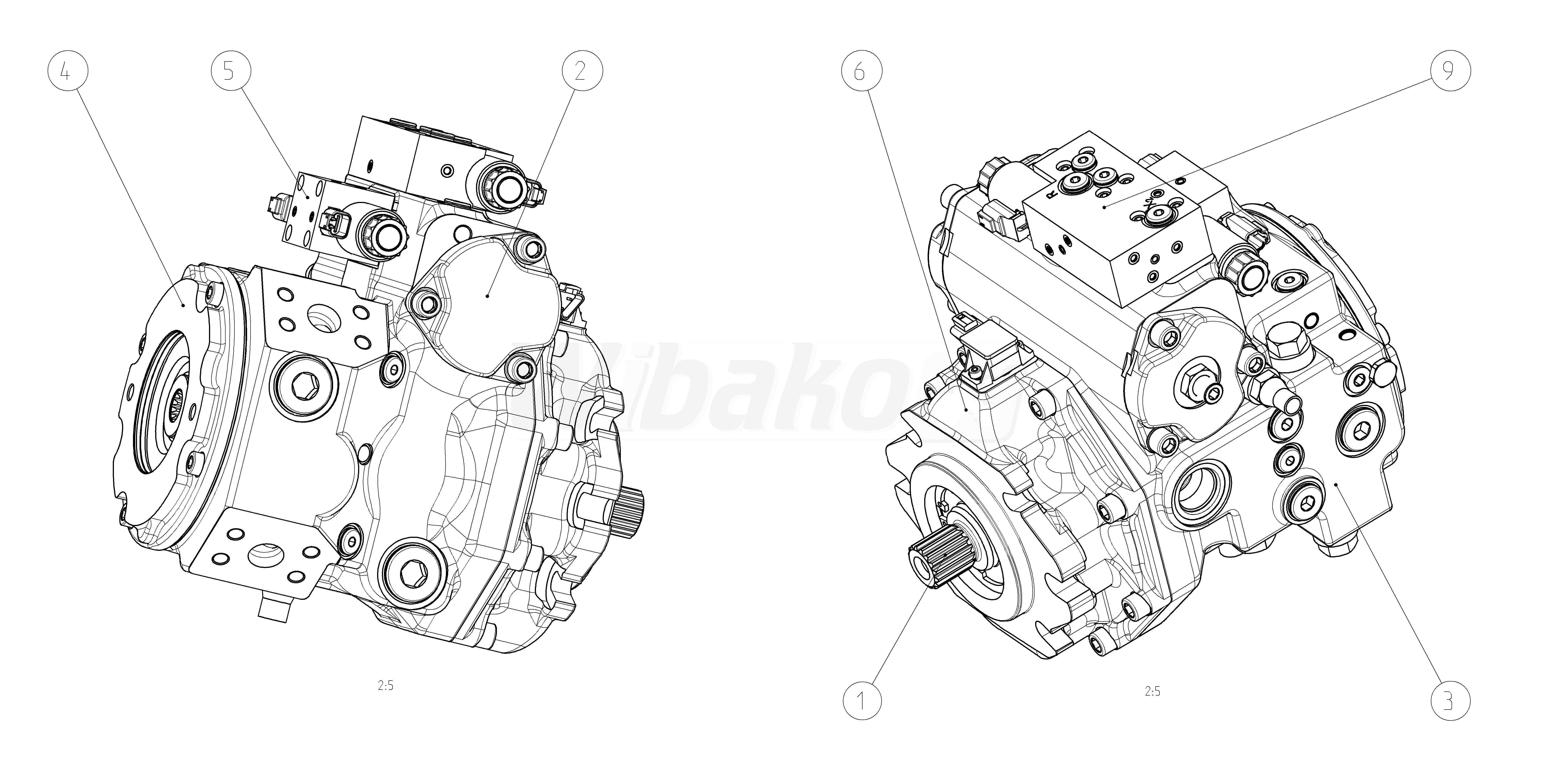 Axial piston variable pump A4VG, swashplate design, nominal pressure 450 bar, maximum pressure 500 bar. Pump, closed circuit. Geometric displacement 085 cm3. Series 40. Metric ports according to ISO 6149 with O-ring seal, metric fastening thread according to DIN 13. Direction of rotation: clockwise (viewed on drive shaft). Sealing material: NBR (nitrile rubber), shaft seal in FKM (fluoroelastomer). Mounting flange SAE J744 127-2/4. SAE working port A and B, on left side (45° left). Standard rotary group, boost pump integrated, standard internal gear pump. Flange SAE J744: diameter- 101-2 (B), mounting- horizontal, code- B2. Hub for splined shaft: diameter- 7/8 in 13T 16/32DP, code- S4. High-pressure relief valve, direct operated, fixed setting, with low-pressure relief valve, fixed setting. Filtration in the boost pump suction line.
