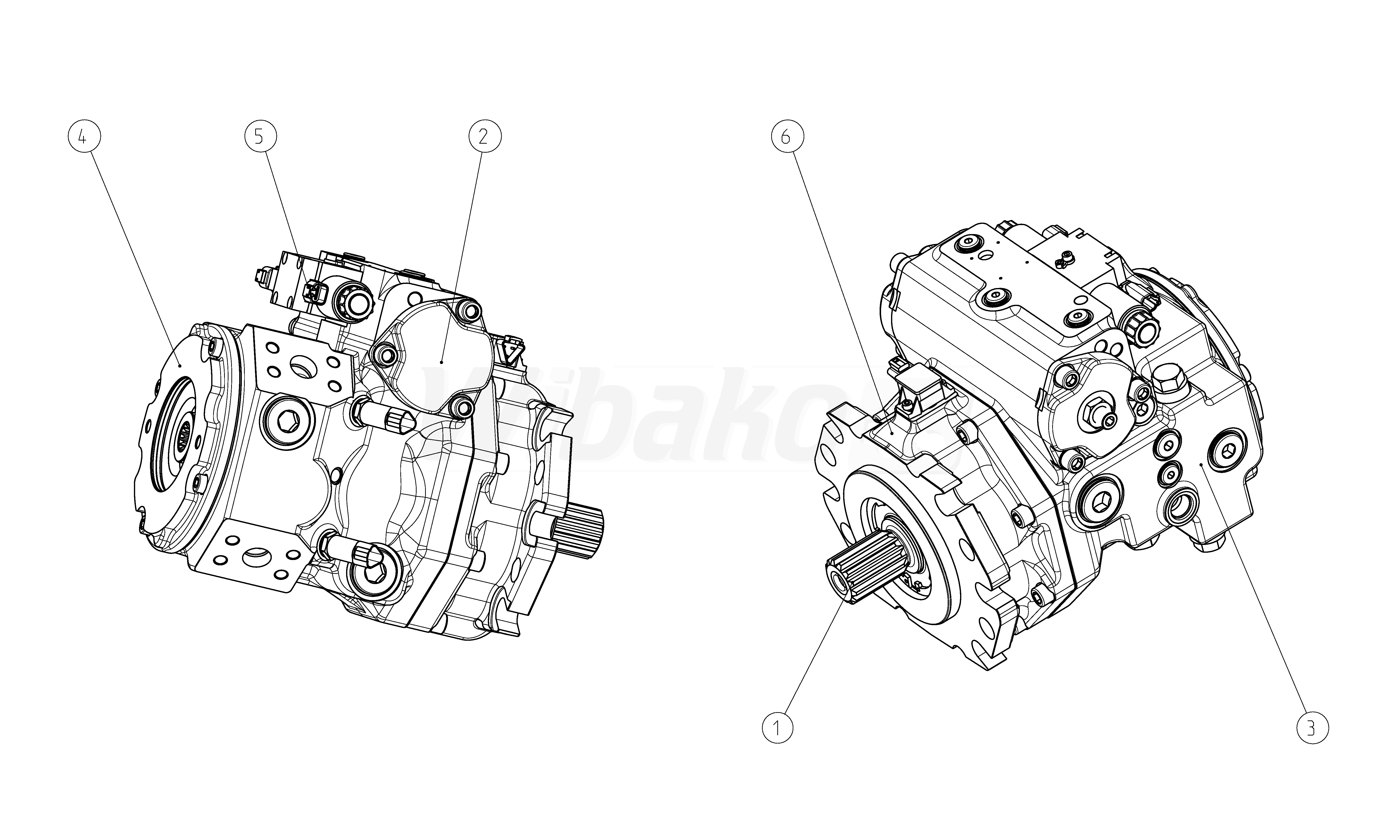 Axial piston variable pump A4VG, swashplate design, nominal pressure 450 bar, maximum pressure 500 bar. Pump, closed circuit. Geometric displacement 110 cm3. Proportional control, electric U = 24 V. Without pressure cut-off, without bypass. DEUTSCH molded connector, 2-pin – without suppressor diode. Electric swivel angle sensor (DWS20-1, 3-pin). Without additional function. Without DA control valve. Series 40. Metric ports according to ISO 6149 with O-ring seal, metric fastening thread according to DIN 13. Direction of rotation: counter-clockwise (viewed on drive shaft). Sealing material: NBR (nitrile rubber), shaft seal in FKM (fluoroelastomer). Mounting flange SAE J744 152-2/4. Splined shaft ANSI B92.1a–1976 1 3/4 in 13T 8/16DP. SAE working port A and B, on left side (45° left). Standard rotary group, without boost pump. Flange SAE J744: diameter- 101-2 (B), mounting- horizontal, code- B2. Hub for splined shaft: diameter- 7/8 in 13T 16/32DP, code- S5. Standard version with installation variants.