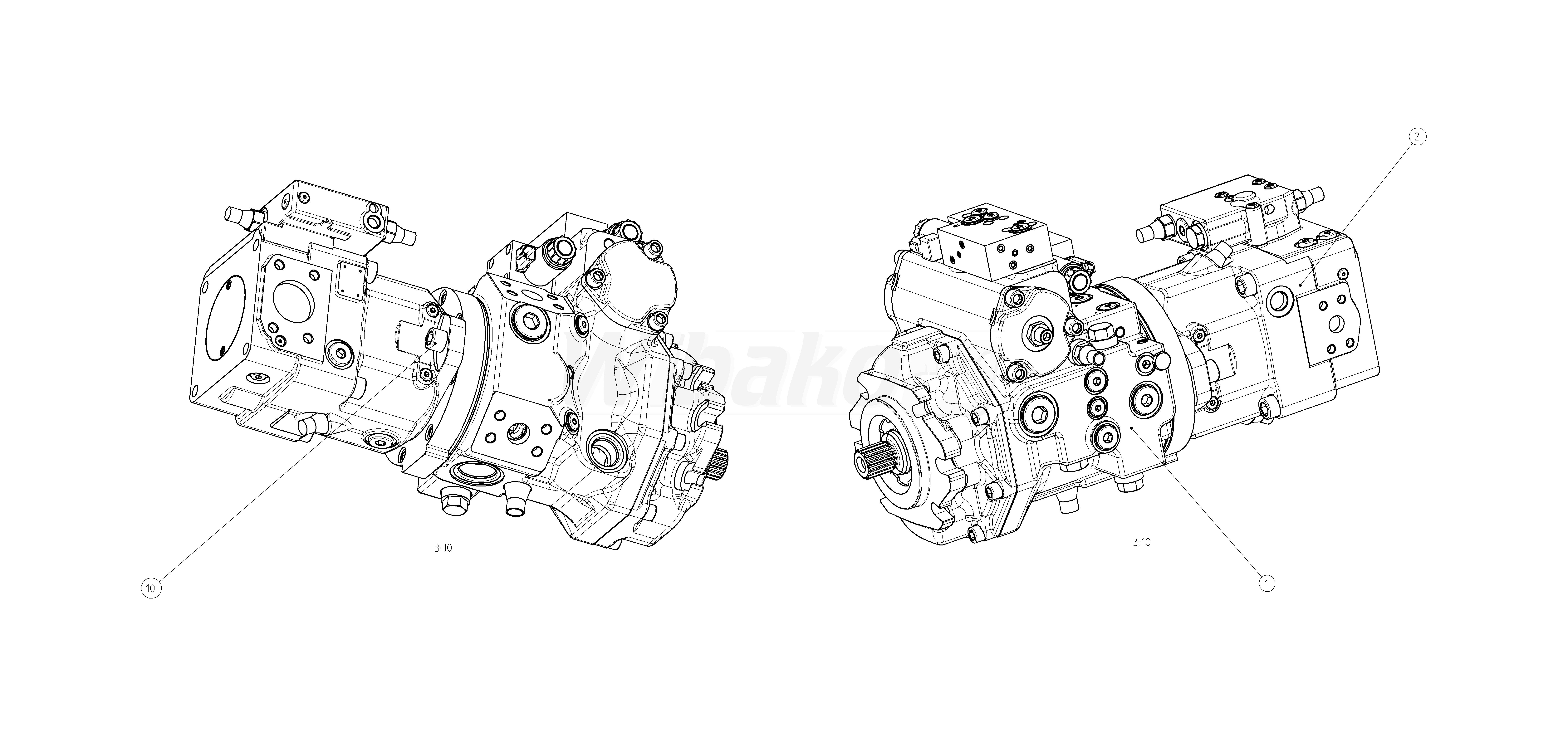 2. Axial Piston Variable Pump A11VO. Swashplate design, variable, nominal pressure 350 bar, maximum pressure 400 bar. Open circuit. Size, ≈ displacement Vg maks. 60 cm3. Control unit: power control with override Direction of rotation: clockwise (viewed from shaft end).