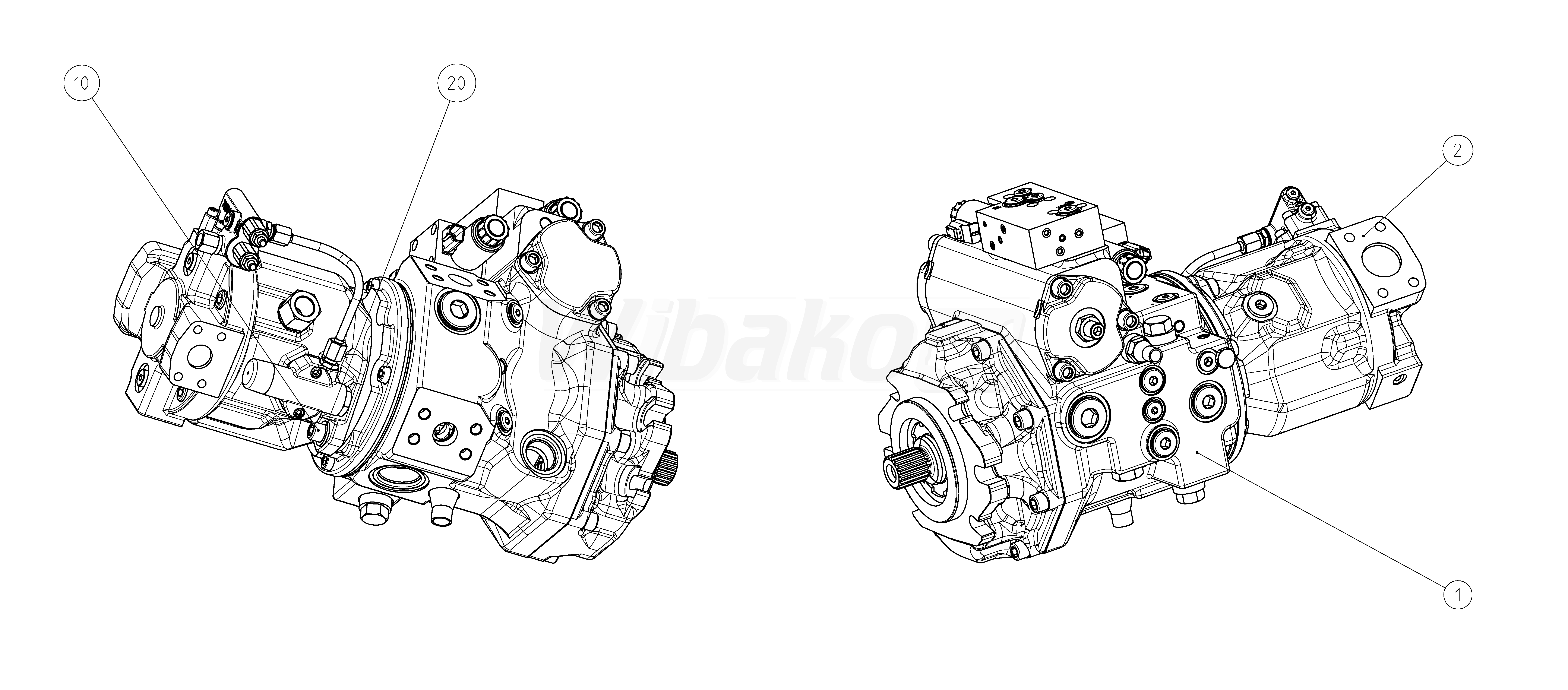 2. Axial piston variable pump A10V,  swashplate design, open circuit, nominal pressure 280 bar, maximum pressure 350 bar. Series 31. Geometric displacement 45 cm3. Pressure-flow power control.