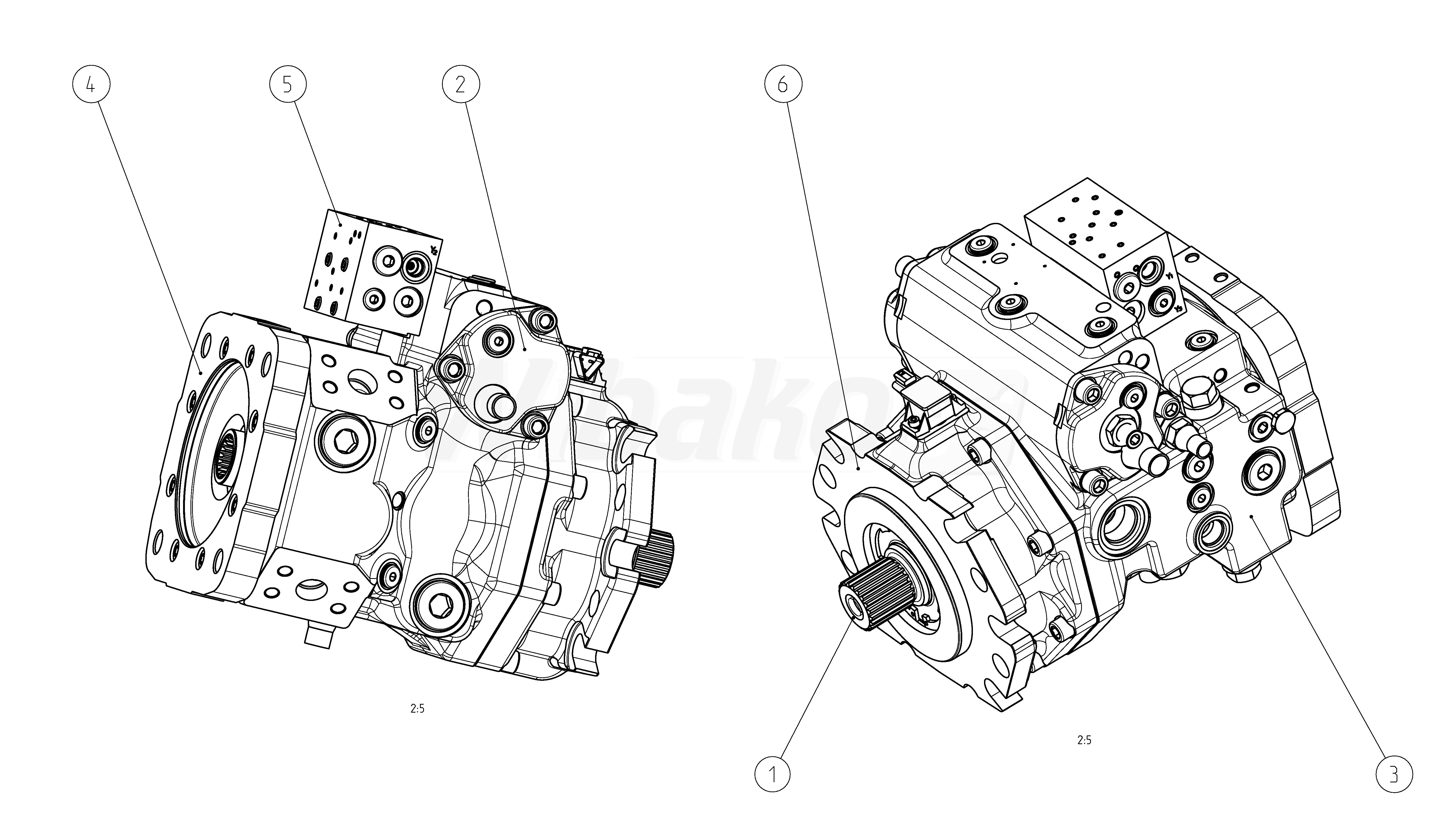 Axial piston variable pump A4VG, swashplate design, nominal pressure 450 bar, maximum pressure 500 bar. Pump, closed circuit. Geometric displacement 110 cm3. Neutral valve U = 12 V and mechanical stroke limiter and ports X3 X4. Series 40. Metric ports according to ISO 6149 with O-ring seal, metric fastening thread according to DIN 13. Direction of rotation: counter-clockwise (viewed on drive shaft). Sealing material: NBR (nitrile rubber), shaft seal in FKM (fluoroelastomer). Mounting flange SAE J744 152-2/4. Splined shaft DIN 5480 W45×2×21×9g. SAE working port A and B, on left side (45° left). Standard rotary group, without boost pump. High-pressure relief valve, direct operated, fixed setting, with low-pressure relief valve, fixed setting. External boost pressure supply. Standard version with installation variants.