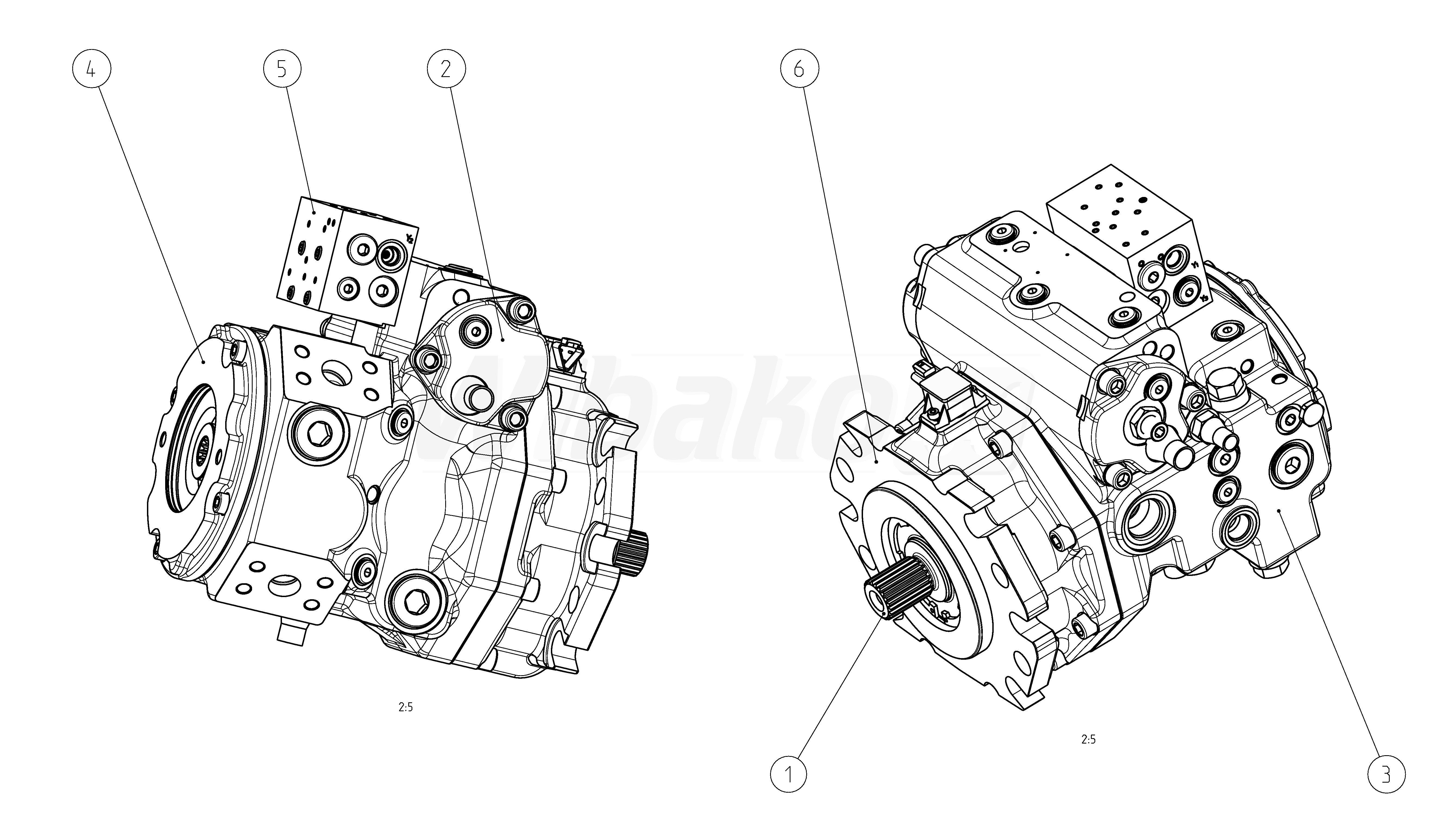 Axial piston variable pump A4VG, swashplate design, nominal pressure 450 bar, maximum pressure 500 bar. Pump, closed circuit. Geometric displacement 110 cm3. Neutral valve U = 12 V and mechanical stroke limiter and ports X3 X4. Series 40. Metric ports according to ISO 6149 with O-ring seal, metric fastening thread according to DIN 13. Direction of rotation: counter-clockwise (viewed on drive shaft). Sealing material: NBR (nitrile rubber), shaft seal in FKM (fluoroelastomer). Mounting flange SAE J744 152-2/4. Splined shaft ANSI B92.1a–1976 1 3/8 in 21T 16/32DP. SAE working port A and B, on left side (45° left). Standard rotary group, without boost pump. Flange SAE J744: diameter- 101-2 (B), mounting- horizontal, code- B2. Hub for splined shaft: diameter- 7/8 in 13T 16/32DP, code- S4. High-pressure relief valve, direct operated, fixed setting, with low-pressure relief valve, fixed setting. External boost pressure supply. Standard version with installation variants.
