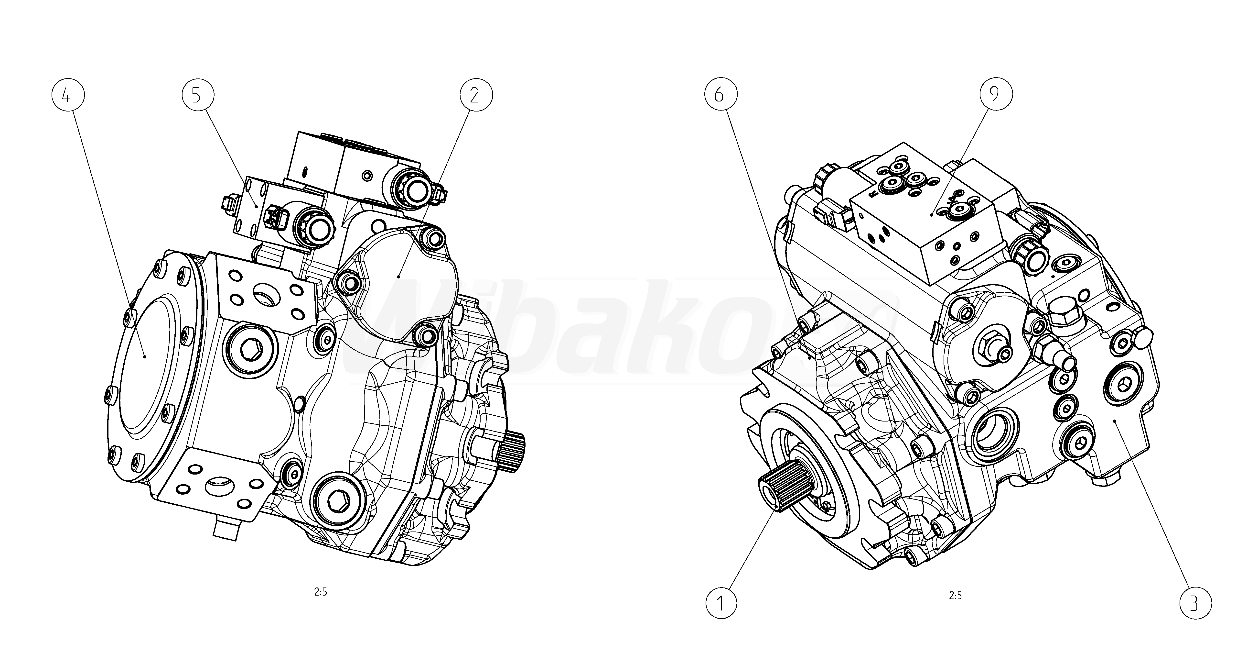 Axial piston variable pump A4VG, swashplate design, nominal pressure 450 bar, maximum pressure 500 bar. Pump, closed circuit. Geometric displacement 085 cm3. Series 40. Metric ports according to ISO 6149 with O-ring seal, metric fastening thread according to DIN 13. Direction of rotation: clockwise (viewed on drive shaft). Sealing material: NBR (nitrile rubber), shaft seal in FKM (fluoroelastomer). Mounting flange SAE J744 127-2/4. SAE working port A and B, on left side (45° left). Standard rotary group, boost pump integrated, standard internal gear pump. Without through drive. High-pressure relief valve, direct operated, fixed setting, with low-pressure relief valve, fixed setting. Filtration in the boost pump suction line.
