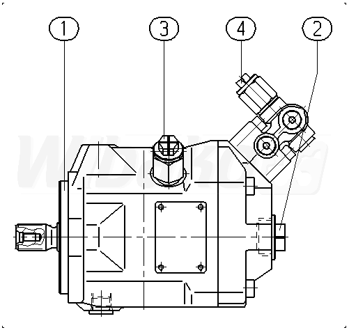 Axial piston variable pump A10VSO, swashplate design, open circuit, nominal pressure 250 bar, maximum pressure 315 bar. Series 52. Geometric displacement 10 cm3. Pressure controller with flow controller, hydraulic, X-T plugged with flushing function. Directions of rotation: counter-clockwise (viewed on drive shaft). Splined shaft ISO 3019-1, standard. Mounting flange ISO 3019-1 (SAE) 2-hole. Threaded port metric, rear, not for through drive. Without through drive.