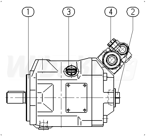 Axial piston variable pump A10VSO, swashplate design, open circuit, nominal pressure 250 bar, maximum pressure 315 bar. Series 52. Geometric displacement 10 cm3. Pressure controller with pressure cut-off, hydraulic, remote controlled. Directions of rotation: clockwise (viewed on drive shaft).