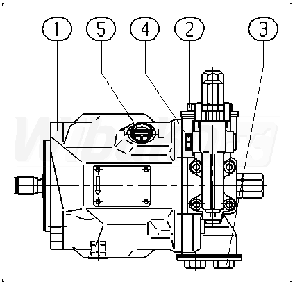 Axial piston variable pump A10VS, swashplate design, open circuit, nominal pressure 280 bar, maximum pressure 350 bar. Series 31. Geometric displacement 18 cm3. Pressure controller with flow controller, hydraulic, X-T open.