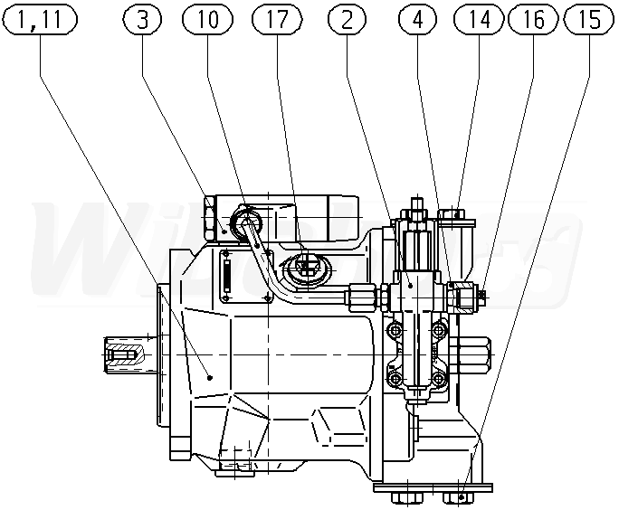 Axial piston variable pump A10VS, swashplate design, open circuit, nominal pressure 280 bar, maximum pressure 350 bar. Series 31. Geometric displacement 71 cm3. Pressure-flow power control. Sealing material: FKM (fluoroelastomer). Drive splined shaft ANSI B92.1a for higher input torque.