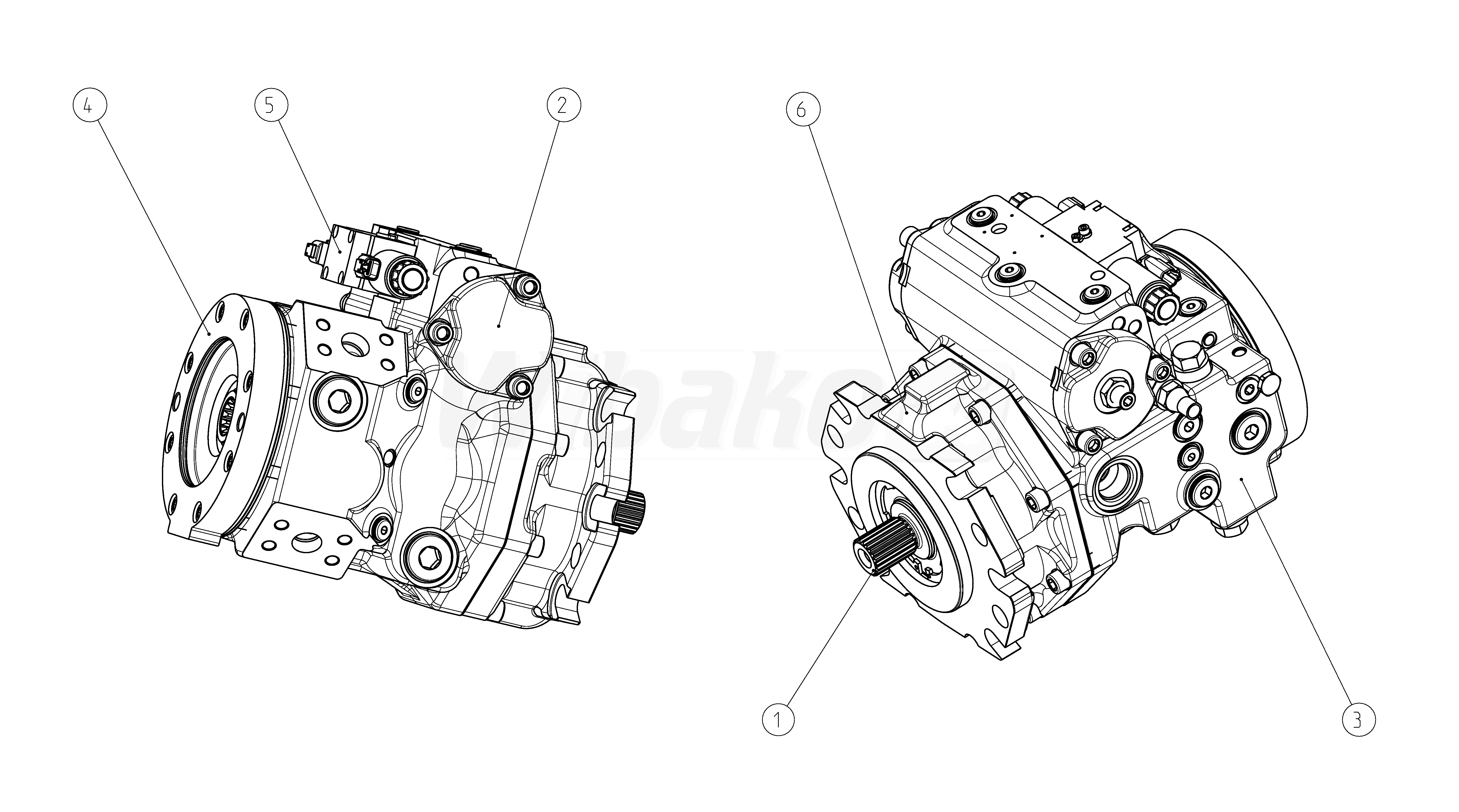 Axial piston variable pump A4VG, swashplate design, nominal pressure 450 bar, maximum pressure 500 bar. Pump, closed circuit. Geometric displacement 110 cm3. Proportional control, electric U = 24 V. Pressure cut-off, with bypass. Fixed setting, hydraulic, mechanical. DEUTSCH molded connector, 2-pin – without suppressor diode. Without swivel angle sensor. Without additional function. Without DA control valve. Series 40. Metric ports according to ISO 6149 with O-ring seal, metric fastening thread according to DIN 13. Direction of rotation: counter-clockwise (viewed on drive shaft). Sealing material: NBR (nitrile rubber), shaft seal in FKM (fluoroelastomer). Mounting flange SAE J744 152-2/4. Splined shaft ANSI B92.1a–1976 1 3/8 in 21T 16/32DP. SAE working port A and B, on left side (45° left). Standard rotary group, boost pump integrated, standard internal gear pump. Flange SAE J744: diameter- 127-2 (C), mounting- horizontally, code- C2. Hub for splined shaft: diameter- 1 1/4 in 14T 12/24DP, code- S7. High-pressure relief valve, direct operated, fixed setting, with low-pressure relief valve, fixed setting. Filtration in the boost pump suction line.