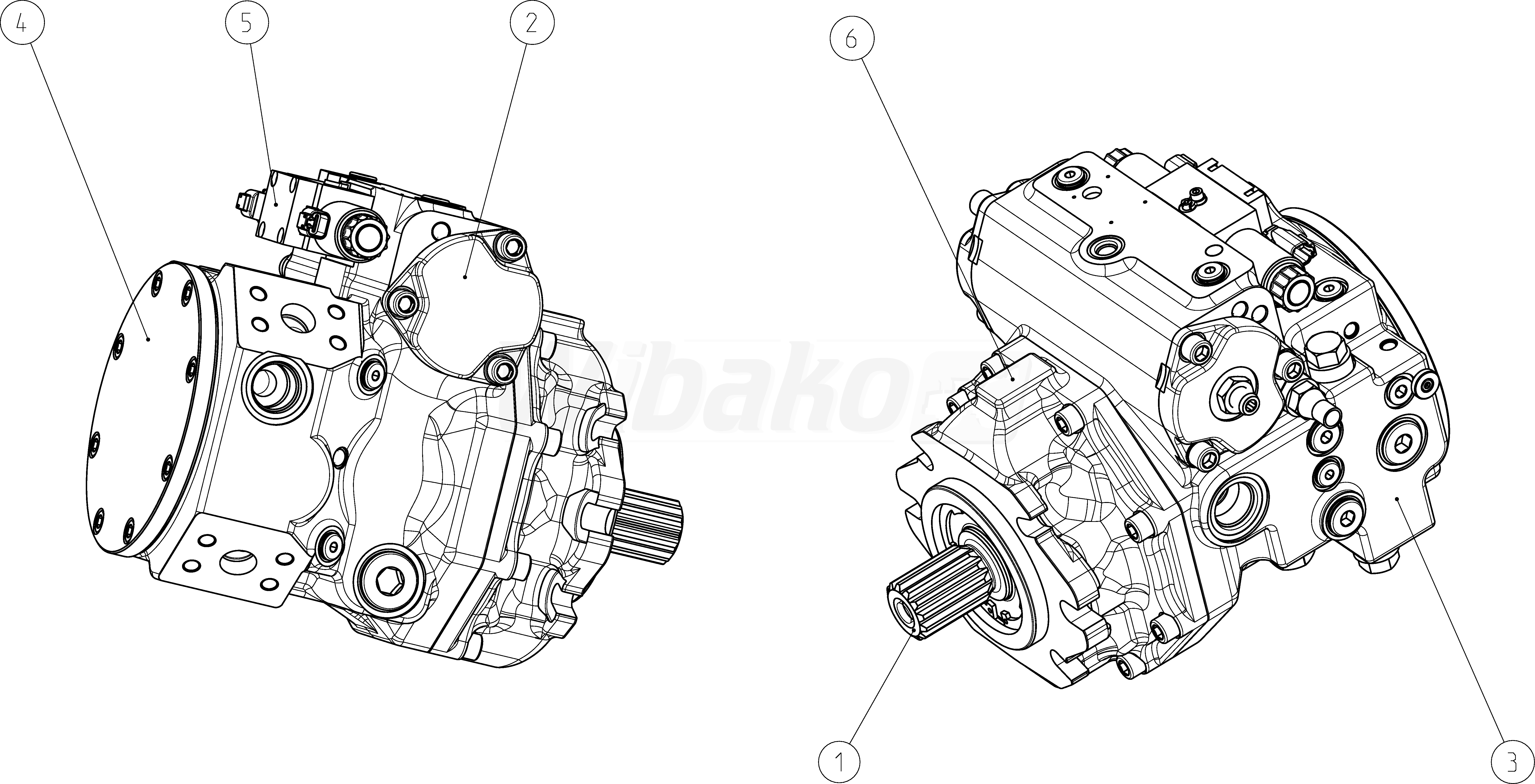 Axial piston variable pump A4VG, swashplate design, nominal pressure 450 bar, maximum pressure 500 bar. Pump, closed circuit. Geometric displacement 110 cm3. Proportional control, electric U = 12 V. Pressure cut-off, with bypass. Fixed setting, hydraulic, mechanical. DEUTSCH molded connector, 2-pin – without suppressor diode. Without swivel angle sensor. Without additional function. Without DA control valve. Series 40. Metric ports according to ISO 6149 with O-ring seal, metric fastening thread according to DIN 13. Direction of rotation: clockwise (viewed on drive shaft). Sealing material: NBR (nitrile rubber), shaft seal in FKM (fluoroelastomer). Mounting flange SAE J744 127-2/4. Splined shaft ANSI B92.1a–1976 1 3/4 in 13T 8/16DP. SAE working port A and B, on left side (45° left). Standard rotary group, without boost pump. Without through drive. Filtration in the boost pump pressure line. Ports for external boost circuit filtration (Fe and Fa). Standard version with installation variants.