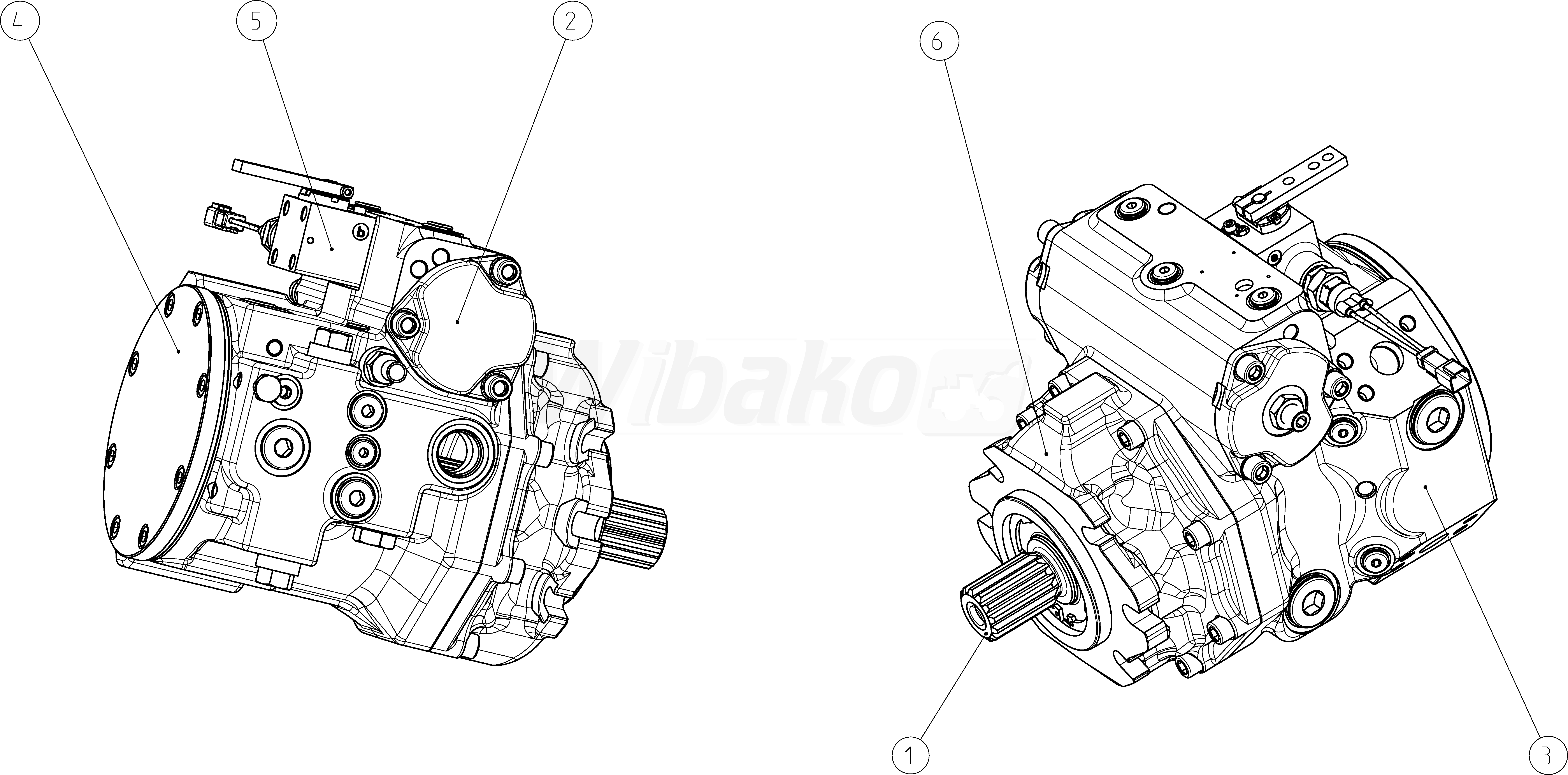 Axial piston variable pump A4VG, swashplate design, nominal pressure 450 bar, maximum pressure 500 bar. Pump, closed circuit. Geometric displacement 110 cm3. Proportional control, hydraulic, mechanical servo, hexagon shaft with lever with neutral position switch. Pressure cut-off, with bypass. Fixed setting, hydraulic, mechanical. Without connector. Without swivel angle sensor. Without additional function. Without DA control valve. Series 40. Metric ports according to ISO 6149 with O-ring seal, metric fastening thread according to DIN 13. Direction of rotation: counter-clockwise (viewed on drive shaft). Sealing material: NBR (nitrile rubber), shaft seal in FKM (fluoroelastomer). Mounting flange SAE J744 127-2/4. Splined shaft ANSI B92.1a–1976 1 3/4 in 13T 8/16DP. SAE working port A and B, on right side (45° right). High-speed rotary group, boost pump integrated, standard internal gear pump. Without through drive.