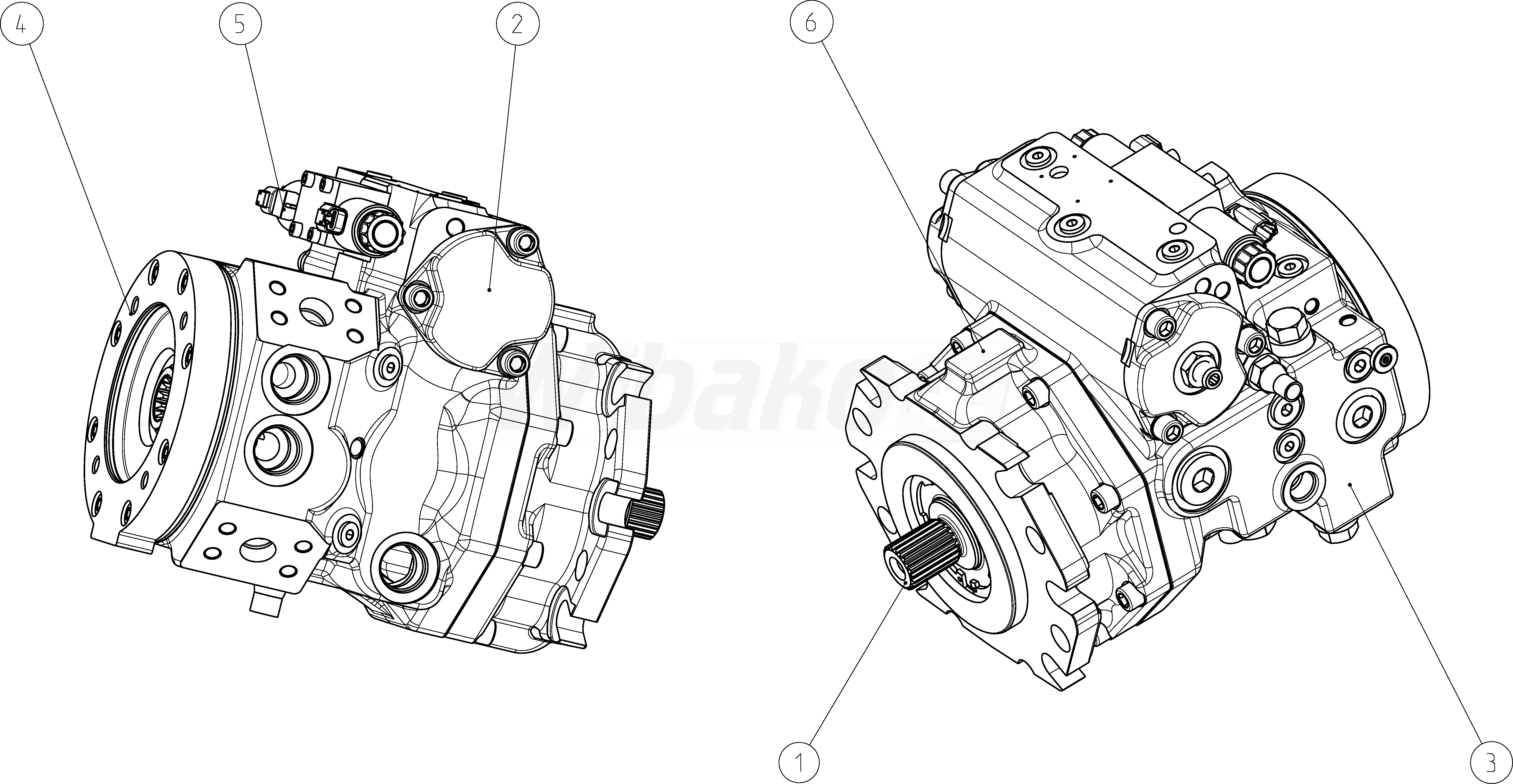 Axial piston variable pump A4VG, swashplate design, nominal pressure 450 bar, maximum pressure 500 bar. Pump, closed circuit. Geometric displacement 110 cm3. Pressure cut-off, with bypass. Fixed setting, hydraulic, mechanical. DEUTSCH molded connector, 2-pin – without suppressor diode. Without swivel angle sensor. Without additional function. Without DA control valve. Series 40. Filtration in the boost pump pressure line. Ports for external boost circuit filtration (Fe and Fa). Standard version with installation variants.