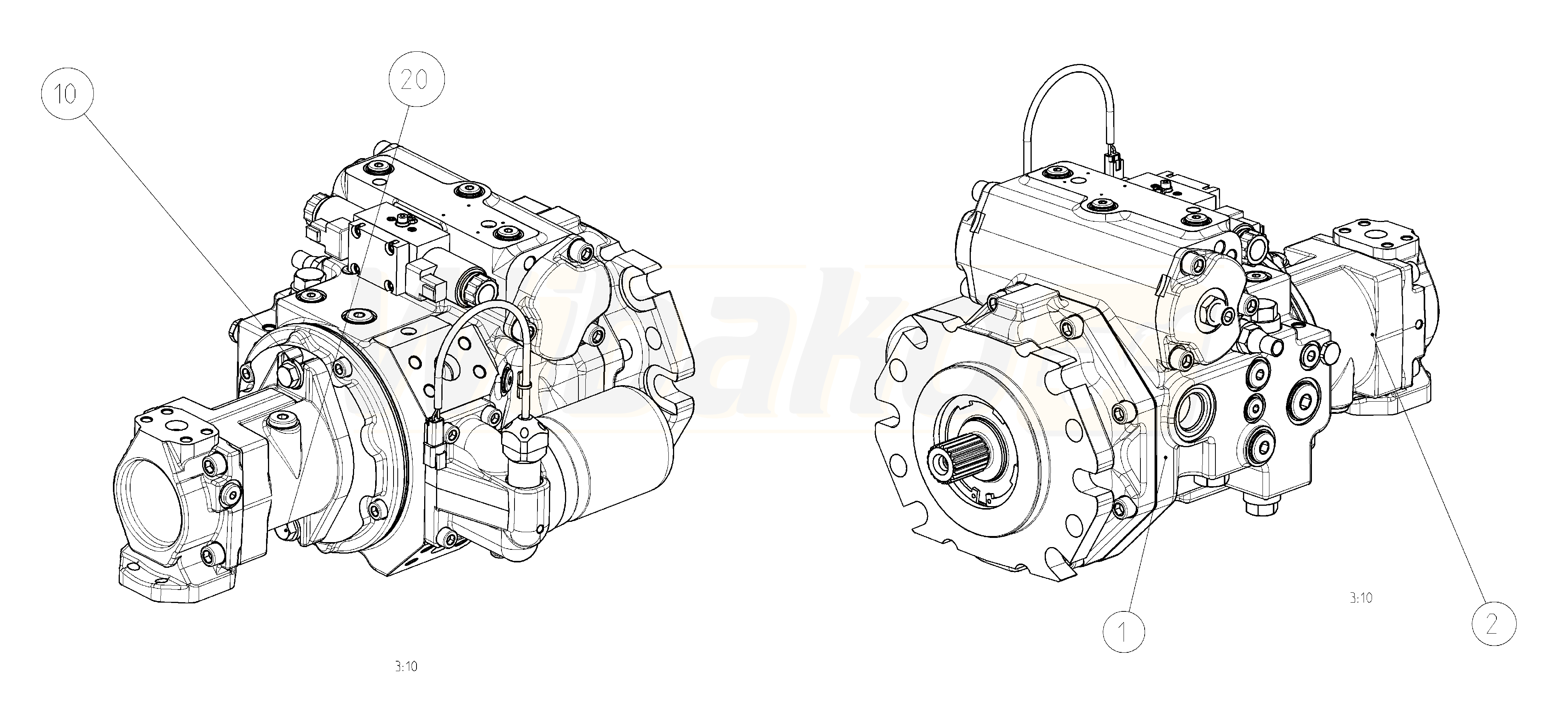 1. Axial piston variable pump A4VG, swashplate design, nominal pressure 450 bar, maximum pressure 500 bar. Pump, closed circuit. Geometric displacement 110 cm3. Proportional control, electric U = 24 V. Series 40. Metric ports according to ISO 6149 with O-ring seal, metric fastening thread according to DIN 13. Direction of rotation: counter-clockwise (viewed on drive shaft).