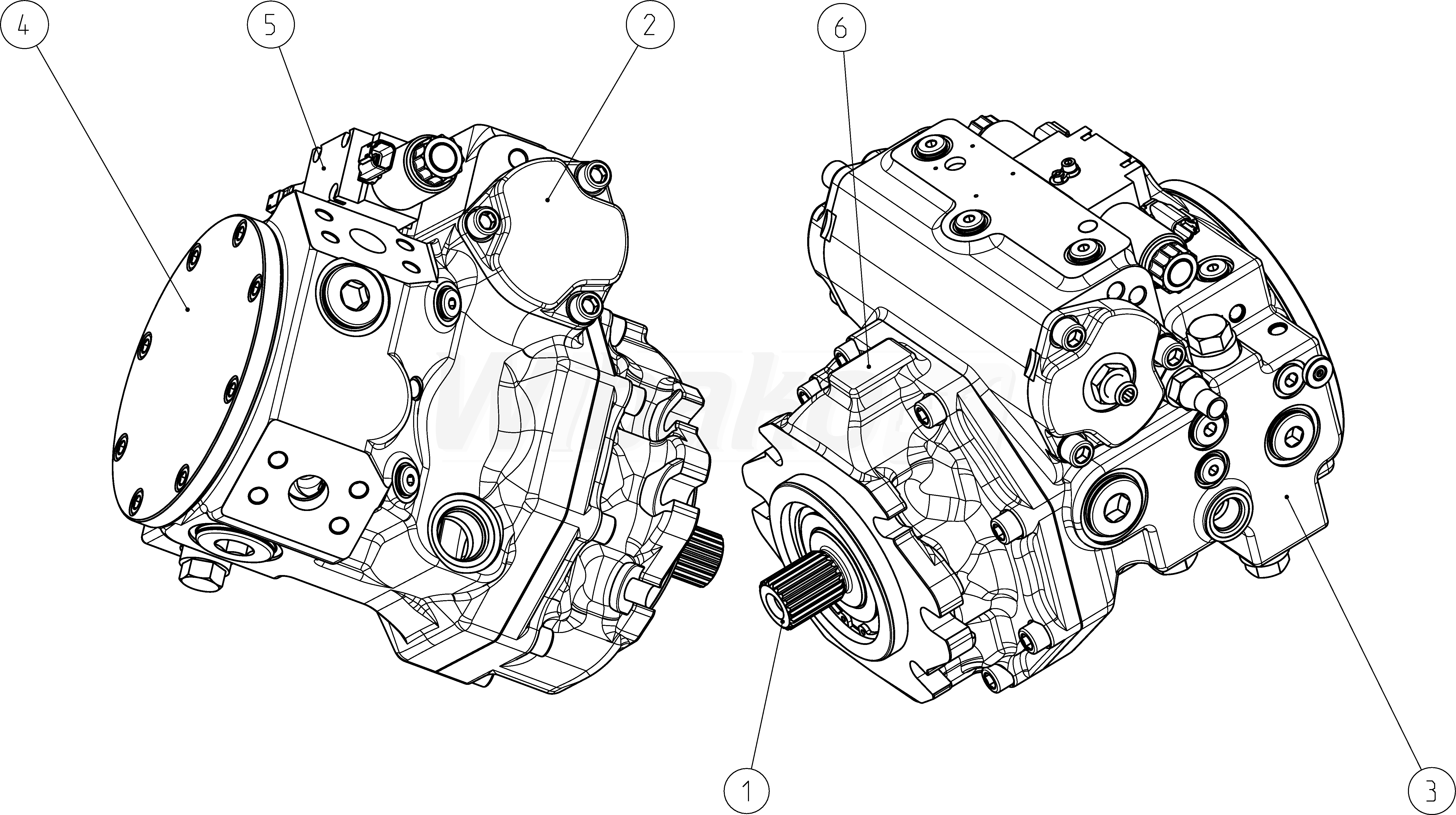 Axial piston variable pump A4VG, swashplate design, nominal pressure 450 bar, maximum pressure 500 bar. Pump, closed circuit. Geometric displacement 110 cm3. Proportional control, electric U = 12 V. Mechanical stroke limiter and stroking chamber pressure port X3 X4. Series 40. Metric ports according to ISO 6149 with O-ring seal, metric fastening thread according to DIN 13. Direction of rotation: clockwise (viewed on drive shaft). Sealing material: NBR (nitrile rubber), shaft seal in FKM (fluoroelastomer). Mounting flange SAE J744 127-2/4. Splined shaft ANSI B92.1a–1976 1 3/8 in 21T 16/32DP. SAE working port A and B, on left side (45° left). High-speed rotary group, without boost pump. Without through drive. Special version.